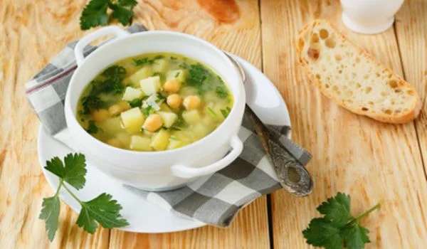 Los garbanzos tienen un contenido calórico bajo, además nos aportan gran cantidad de proteínas para mantener la masa muscular, fibra, que facilita el tránsito intestinal, así como vitaminas y minerales necesarios para las funciones de nuestro organismo. Al incluir en la preparación patata, se añade así un extra de proteínas que complementa las ya existentes en las legumbres.