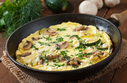 6º Cuando el huevo esté casi cuajado, añadir encima las verduras previamente salteadas.